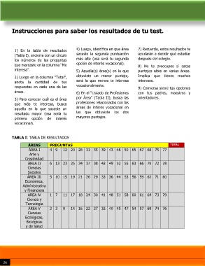 1) En la tabla de resultados 4) Luego, identifica en que área 7) Recuerda, estos resultados te
