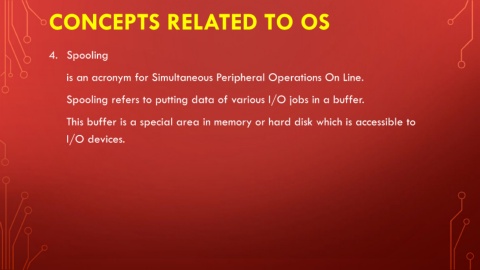 Spooling refers to putting data of various I/O jobs in a buffer.