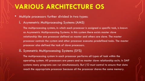 operating system. All processors are peers and no master slave relationship exits. In SMP