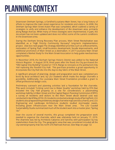 Denham Springs Main Street Action Plan was completed, which outlined a variety of