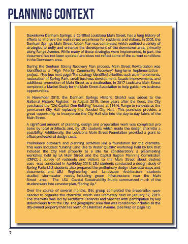 Denham Springs Main Street Action Plan was completed, which outlined a variety of