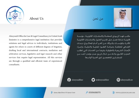 Alzeyoudi Office for Law & Legal Consultancy in United Arab ةــسسؤم ، ةــينوناقلا تاراــشتسلااو ةاــماحملل يدوــيزلا دــهف بــتكم
