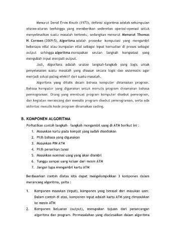 H. Cormen (2009:5), Algoritma adalah prosedur komputasi yang mengambil