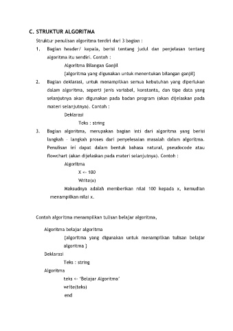 Struktur penulisan algoritma terdiri dari 3 bagian :