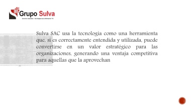 Sulva SAC usa la tecnología como una herramienta que, si es correctamente entendida y utilizada, puede convertirse en un valor estratégico para las organizaciones, generando una ventaja competitiva para aquellas que la aprovechan