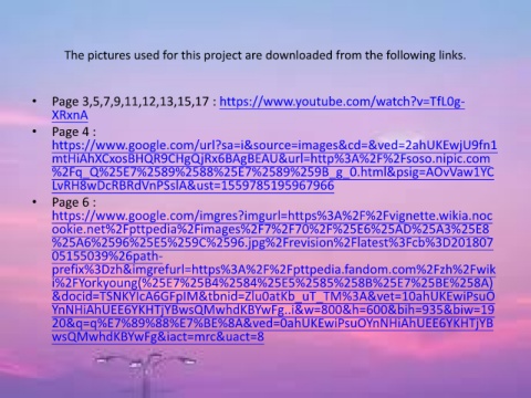 • Page 3,5,7,9,11,12,13,15,17 : https://www.youtube.com/watch?v=TfL0g-