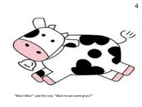 “Moo! Moo!” said the cow. “Want to eat some grass?’’