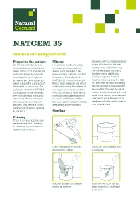 Add the Natcem 35 to water After the NATCEM 35 has water ensuring no standing minimum thickness.