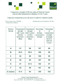 Compressive strength of 100 mm cubes of Natural Cement