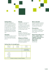 total of 5.5 litres per bag. Exceeding this ratio will lead to lower strength and a longer setting time. In cold weather Start Set 35 Min at 20°c