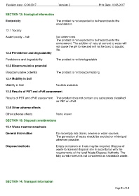 Results of PBT and cPvB assessment This product does not contain any substances classified