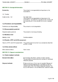 Results of PBT and cPvB assessment This product does not contain any substances classified