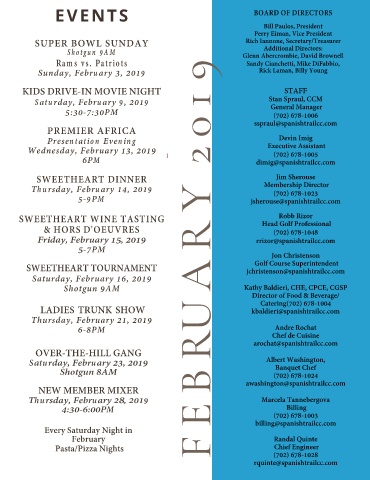 Friday, February 15, 2019 rrizor@spanishtrailcc.com