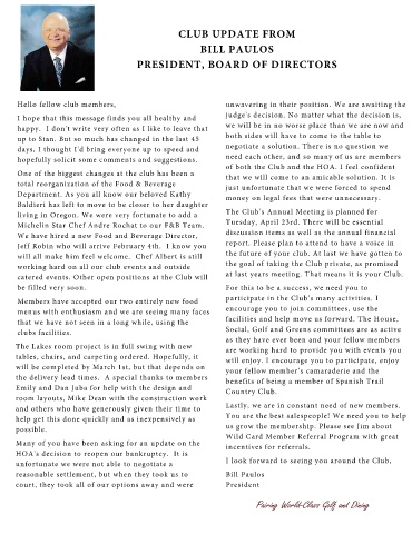 We have hired a new Food and Beverage Director, discussion items as well as the annual financial
