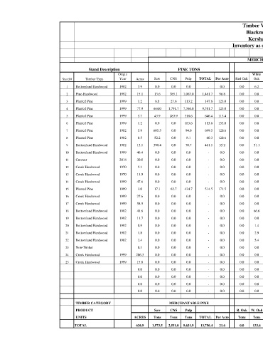 TIMBER CATEGORY MERCHANTABLE PINE MERCHANTABLE HARDWOOD ALL SPECIES PREMERCHANTABLE STANDS