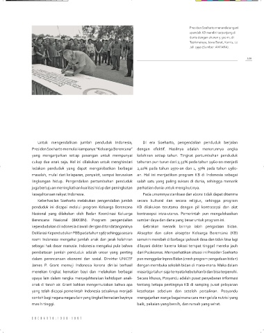 Presiden soeharto memulai kampanye “Keluarga berencana” dengan efektif. Hasilnya adalah menurunnya angka