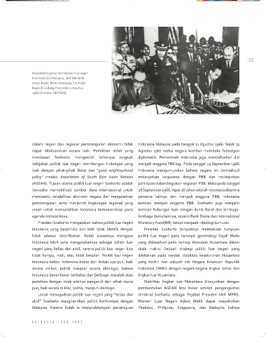 aktif” soeharto menghentikan politik konfrontasi dengan menteri luar negeri adam malik dapat meyakinkan