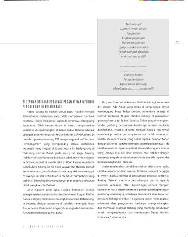 DI JERmAN BELAJAR REKAYASA PESAWAT DAN mENImBA Kini, saat kembali ke aachen, Habibie tak lagi membawa