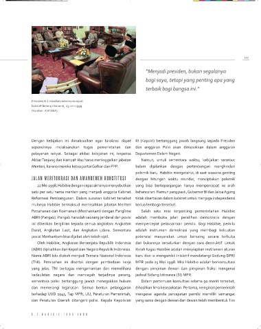(tni). Pemisahan ini disertai dengan pembedaan kerja mPr pada 25 mei 1998. misi Habibie adalah berkonsultasi