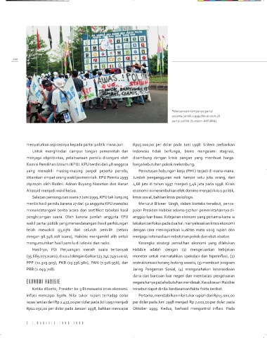menyalurkan aspirasinya kepada partai politik mana pun. rp15.000,00 per dolar pada Juni 1998. sistem perbankan