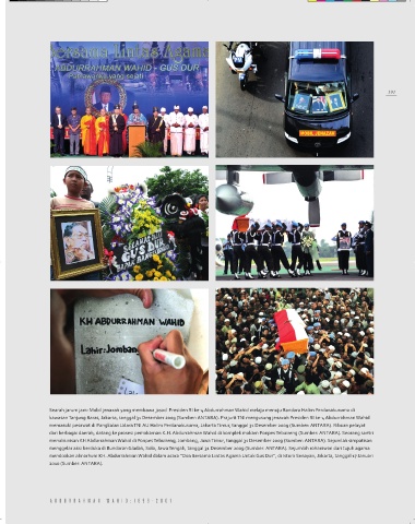 searah jarum jam: mobil jenazah yang membawa jasad  Presiden ri ke-4 abdurrahman Wahid melaju menuju bandara Halim Perdanakusuma di