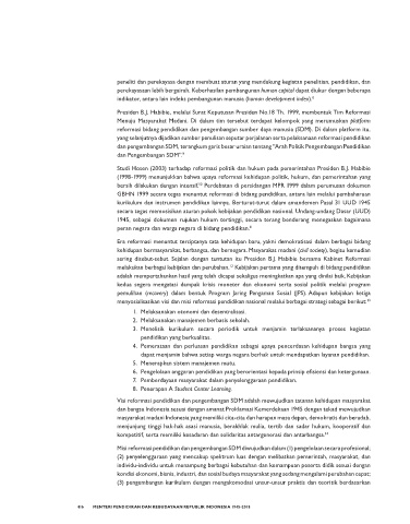 sering disebut-sebut. Sejalan dengan tuntutan itu Presiden B.J. Habibie bersama Kabinet Reformasi bahwa pendidikan untuk semua dan semua untuk pendidikan. 15