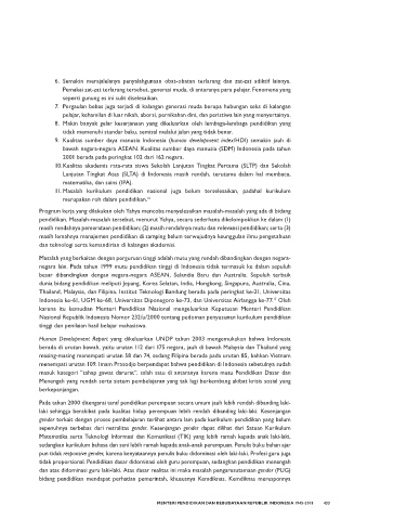 sekali masalah di bidang pendidikan Indonesia, yang sebagian di antaranya merupakan peninggalan besar dibandingkan dengan negara-negara ASEAN, Selandia Baru dan Australia. Sepuluh terbaik