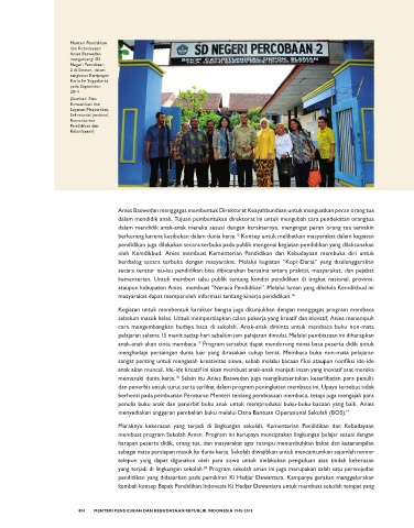 oleh Kemdikbud. Anies membuat Kementerian Pendidikan dan Kebudayaan membuka diri untuk Kebijakan pendidikan pada masa Anies Baswedan juga menyangkut pendidikan anak usia dini (PAUD).