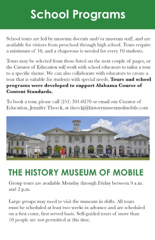 Education, Jennifer Theeck, at theeckj@historymuseumofmobile.com