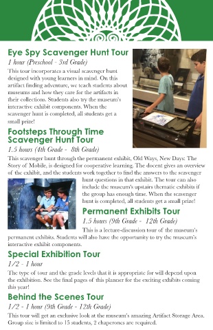 The type of tour and the grade levels that it is appropriate for will depend upon