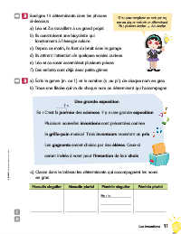 c ) Classe dans le tableau les déterminants qui accompagnent les noms