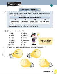 b) Classe dans la bonne ampoule chaque verbe que tu as entouré.