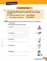 1 a ) Cherche chaque mot dans le dictionnaire. Écris une courte définition