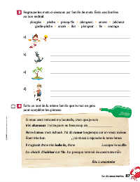3 Regroupe les mots ci-dessous par famille de mots. Écris ces familles