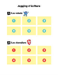 1 Les robots 1 2 3 4 5 6 2 Les chevaliers 1 2 3 4 5 6