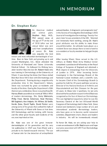 Dr. Katz was one of the great immune- To honor Dr. Katz, we are asking your help to