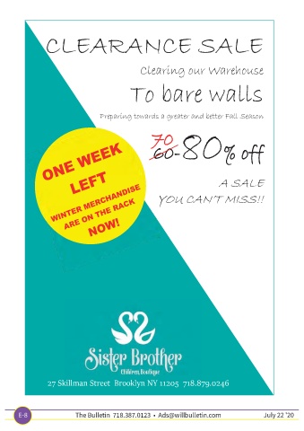 CLEARANCE SALE Clearing our Warehouse To bare walls Preparing towards a greater and better Fall Season 70 60-80% off