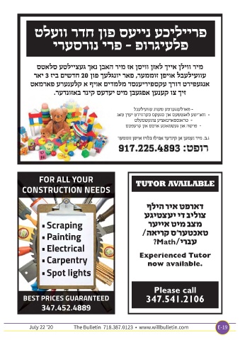 FOR ALL YOUR CONSTRUCTION NEEDS Math Experienced Tutor now available. Please call BEST PRICES GUARANTEED 347.541.2106 347.452.4889