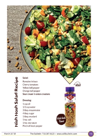 Salad: Romaine lettuce Cherry tomatoes Yellow bell pepper Orange bell pepper Sour cream ‘n onion croutons Dressing: 1 cup oil 1/2 cup water 3 tbsp. mayonnaise 4 tbsp. sugar 1 tbsp. mustard 1 tsp. salt 1 tsp. soy sauce Pinch of black pepper