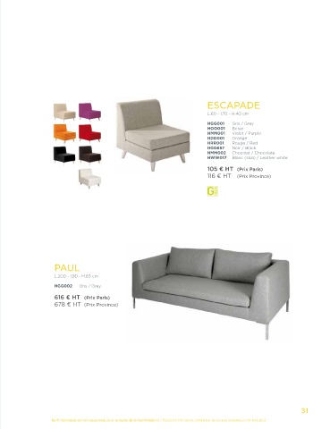 HGG006 Gris / Grey HGG007 Gris / Grey HGG005 Gris / Grey HWW017 Blanc (skaï) / Leather white