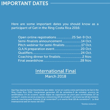 Aquí hay algunas fechas importantes que debés tomar en cuenta como participante de Get in the