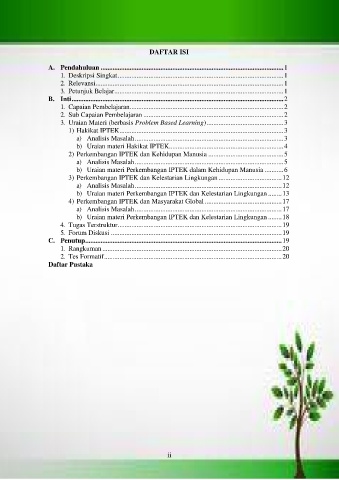 b) Uraian materi Perkembangan IPTEK dan Kelestarian Lingkungan ........ 13