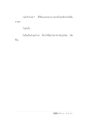“แล้วรักป่ะล่ะ?” สึกิชิมะผละออกมามองหน้าของอีกคนให้เต็ม สายตา “ไม่รักมั้ง” นั่นถือเป็นค าพูดโกหก ที่น่ารักที่สุดในโลกส าหรับคุโรโอะ เท็ต ซึโระ 218 | N o n - b e t a