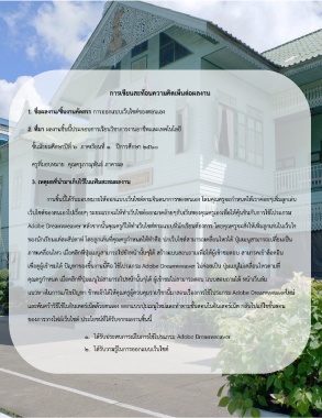 Adobe Dreamweaver หลังจากนั้นคุณครูก็ให้ท าเว็บไซต์ตามแบบที่นักเรียนต้องการ โดยคุณครูจะสั่งให้เพิ่มลูกเล่นในเว็บไซต์