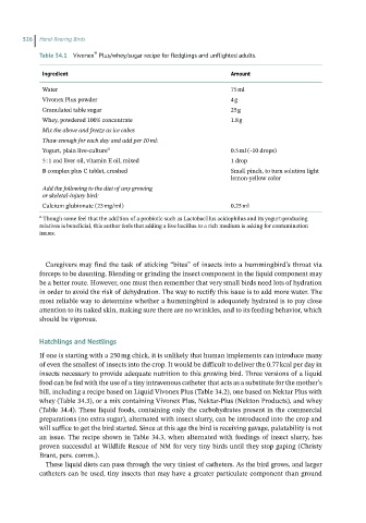 Table 34.1 Vivonex Plus/whey/sugar recipe for fledglings and unflighted adults.