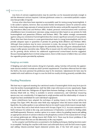 syringe (Van Epps 1999). Because some birds may regurgitate when fed insects mixed into their