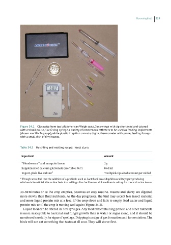 Table 34.5 Hatchling and nestling recipe: Insect slurry.