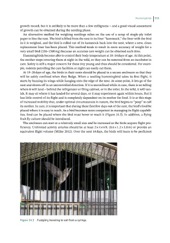 Figure 34.5 Fledgling hovering to eat from a syringe.