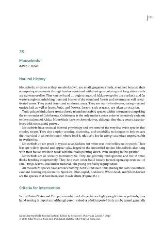 legs are widely spaced and appear splay-legged to the mousebird novice. Mousebirds also hang