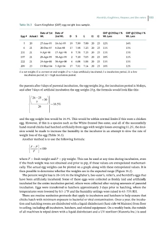 Table 36.3 Guam Kingfisher (GKF) egg weight loss sample.